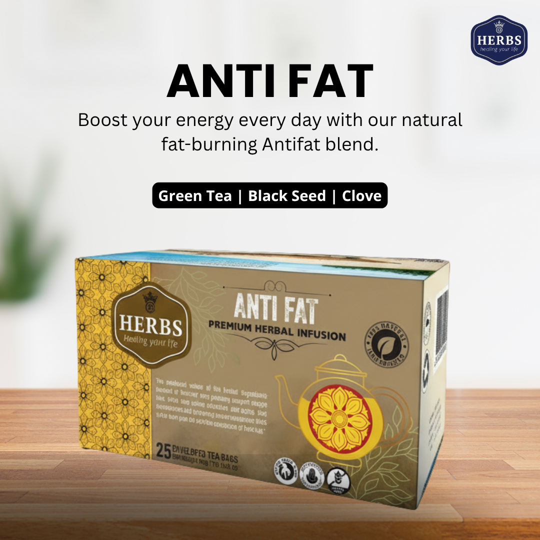 “Anti Fat” is a blend of Green Tea, Black Seeds, and Cloves. The medicinal values of the herbal ingredients blended in “Anti-Fat” may primarily support weight loss, while also aiding relaxation, anti-aging, skin development, and improving insulin resistance. Work out to burn fat with the help of “Anti-Fat.”