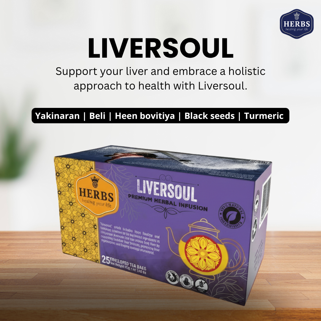 “Liversoul” is a blend of Yakinaran, Beli, Heen bovitiya, Black seeds, and Turmeric. Heen Bovitiya and Yakinaran are known for their key herbal ingredients in indigenous Ayurveda, which can help relieve fatty liver by supporting healthier liver function, promoting liver regeneration, and managing cholesterol.